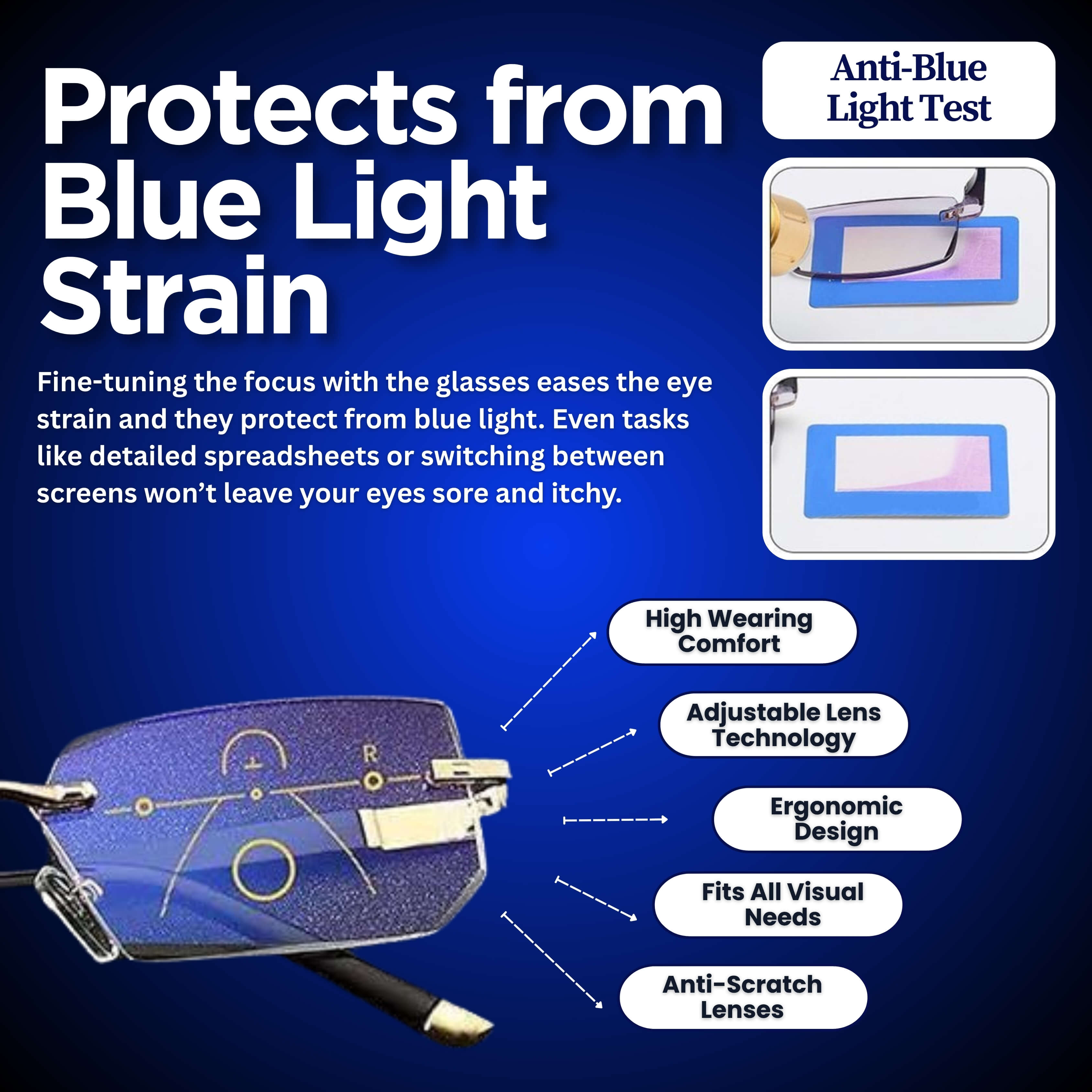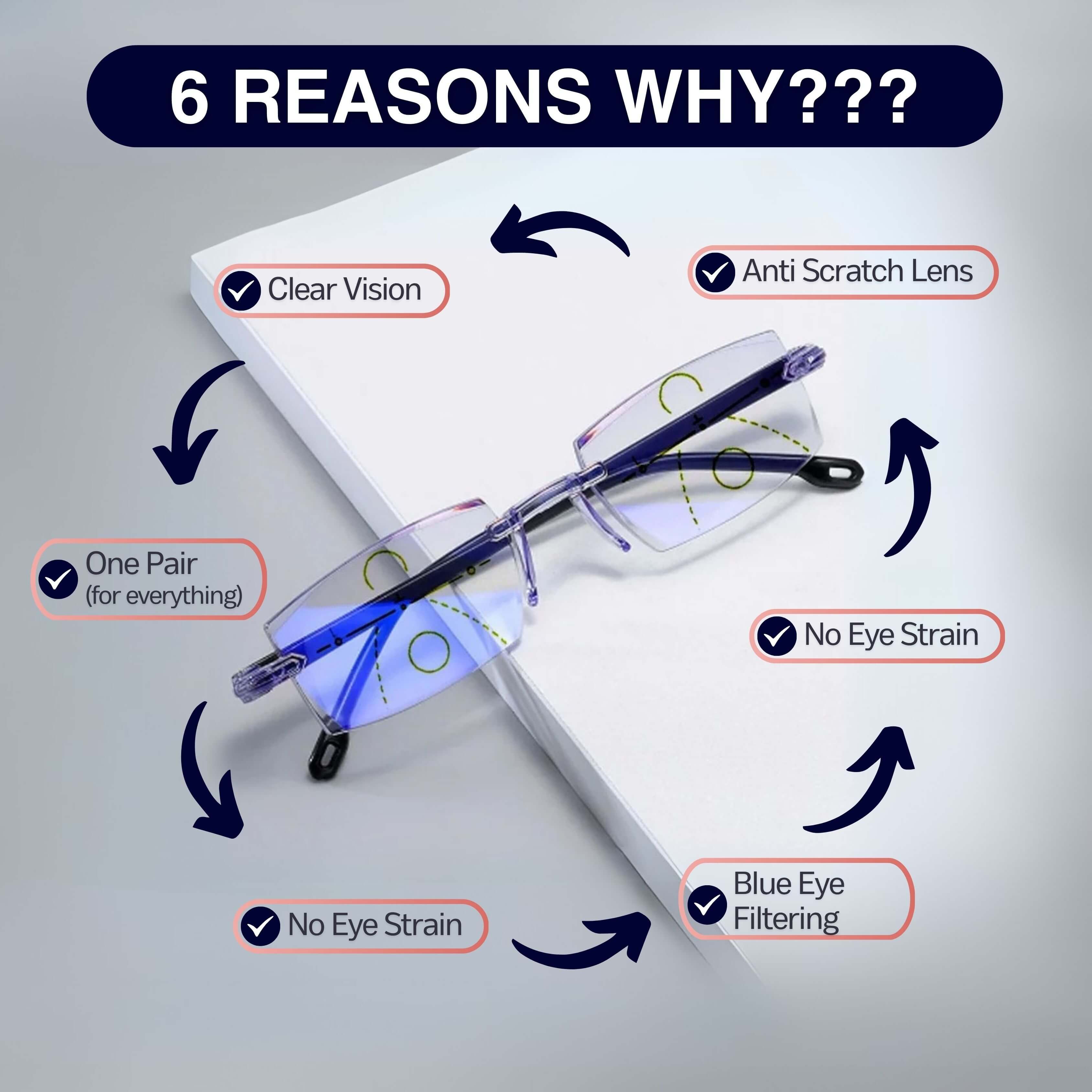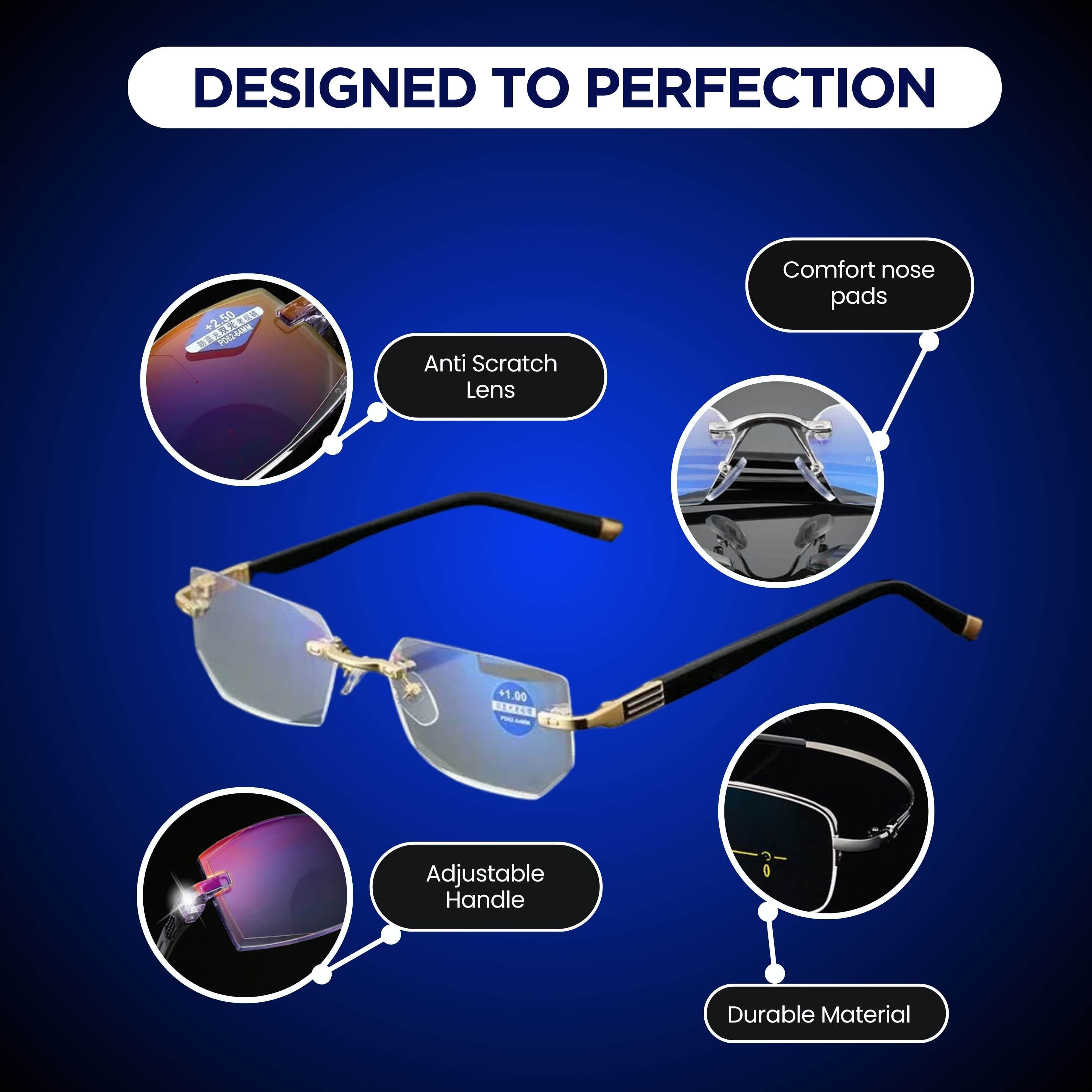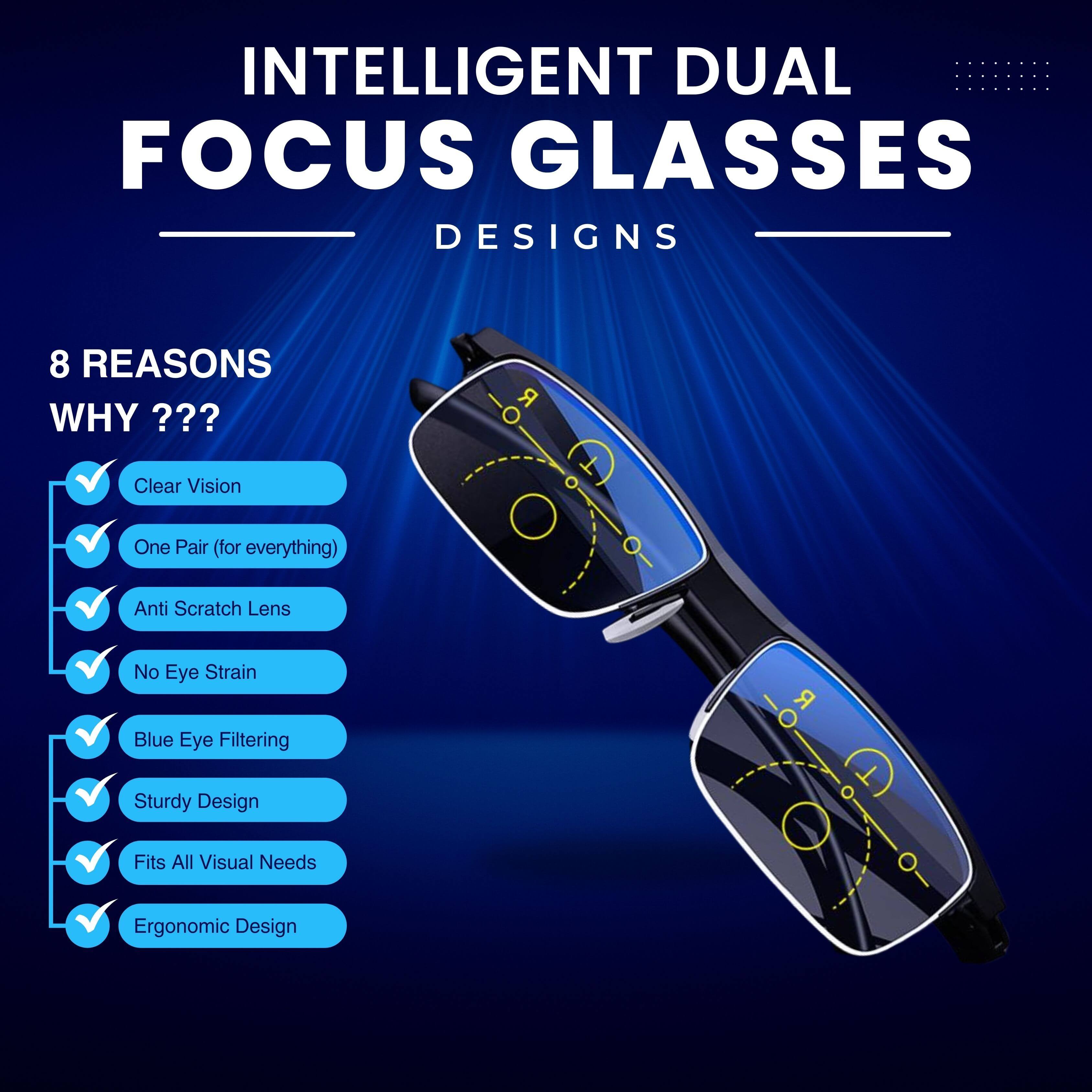 Intelligent Dual Focus Glasses are designed with modern vision in mind. The dual-zone lenses allow your eyes to shift naturally between near and mid-range tasks, without straining or constantly taking your glasses off.